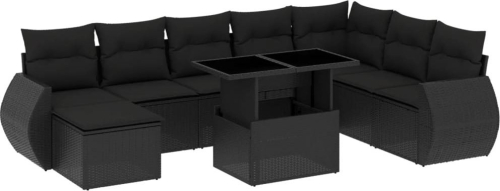 vidaXL 9-cz. zestaw wypoczynkowy do ogrodu, z poduszkami, czarny