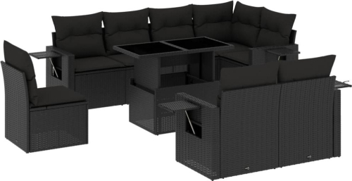 vidaXL 9-cz. zestaw wypoczynkowy do ogrodu, z poduszkami, czarny