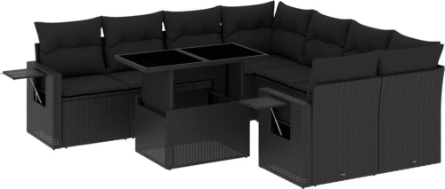 vidaXL 9-cz. zestaw wypoczynkowy do ogrodu, z poduszkami, czarny