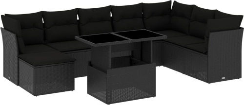 vidaXL 9-cz. zestaw wypoczynkowy do ogrodu, z poduszkami, czarny