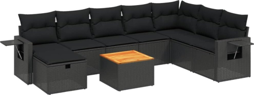 vidaXL 9-cz. zestaw wypoczynkowy do ogrodu, z poduszkami, czarny