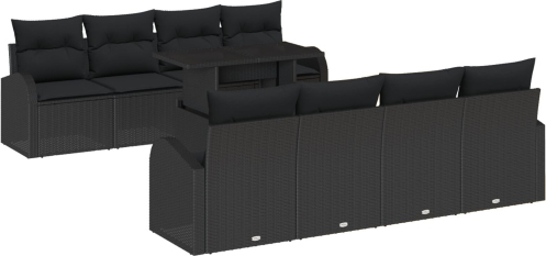 vidaXL 9-częściowy zestaw kanap ogrodowych z poduszkami czarnym polirattanem