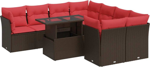 vidaXL 9-częściowy zestaw mebli z poduszkami, brązowy, polirattan i akacja