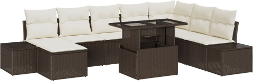 vidaXL 9-częściowy Zestaw Sof Ogrodowych Brązowy i Kremowy Rattan, Tkanina
