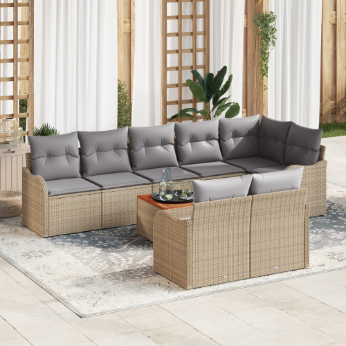 vidaXL 9-częściowy zestaw sof ogrodowych z poduszkami Beżowy Polirattan Akacja
