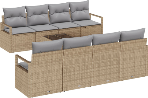 vidaXL 9-częściowy zestaw sof ogrodowych z poduszkami Beżowy Polirattan