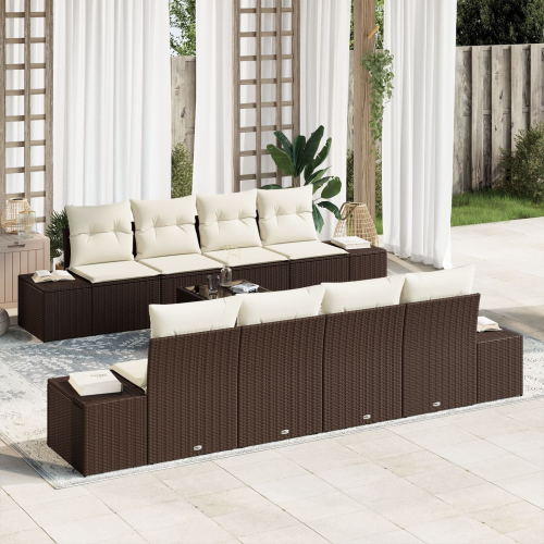 vidaXL 9-częściowy zestaw sof ogrodowych z poduszkami brązowy polirattan