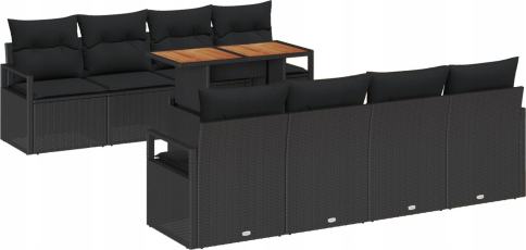 vidaXL 9-częściowy zestaw sof ogrodowych z poduszkami Czarny Polirattan