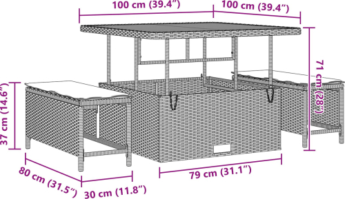 vidaXL 9-częściowy zestaw sof ogrodowych z poduszkami czarny polirattan akacja