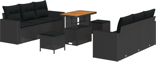 Vidaxl 9-częściowy zestaw sof ogrodowych z poduszkami czarny polirattan akacja