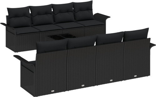 vidaXL 9-częściowy zestaw sof ogrodowych z poduszkami czarny polirattan