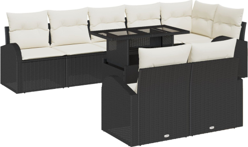 vidaXL 9-częściowy zestaw sof ogrodowych z poduszkami Czarny Polirattan