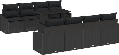 vidaXL 9-częściowy Zestaw Sof Ogrodowych z Poduszkami Czarny Polirattan