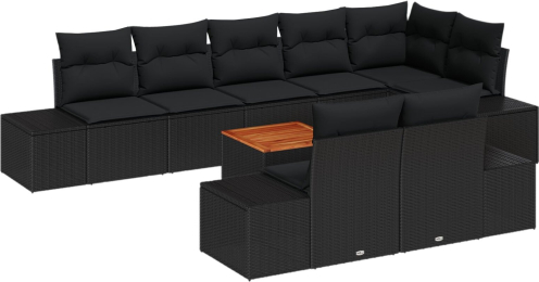 vidaXL 9-częściowy zestaw sof ogrodowych z poduszkami czarnymi z polirattanu akacjowego