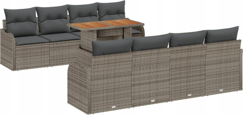 vidaXL 9-Częściowy Zestaw Sof Ogrodowych z Poduszkami Szary Rattan