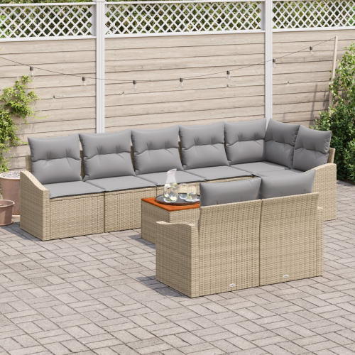 vidaXL 9-częściowy zestaw sof ogrodowych z poduszkami w kolorze beżowym z polirattanu i akacji