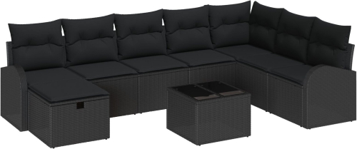 vidaXL 9-częściowy zestaw sofy ogrodowej z poduszkami w czarnym polirattanie