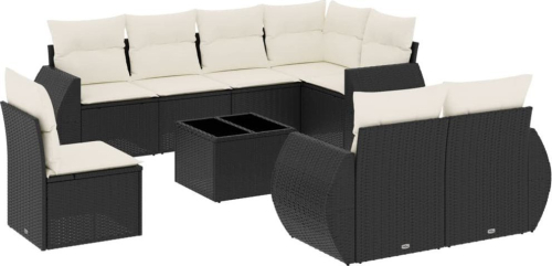 vidaXL 9-częściowy zestaw wypoczynkowy do ogrodu, z poduszkami, czarny