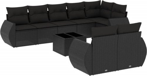 vidaXL 9-częściowy zestaw wypoczynkowy do ogrodu, z poduszkami, czarny