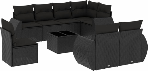 vidaXL 9-częściowy zestaw wypoczynkowy do ogrodu, z poduszkami, czarny