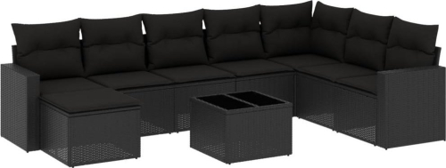 vidaXL 9-częsciowy zestaw wypoczynkowy do ogrodu, z poduszkami, czarny