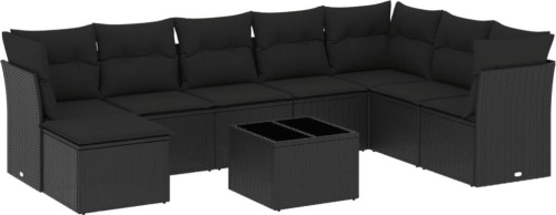 vidaXL 9-częściowy zestaw wypoczynkowy do ogrodu, z poduszkami, czarny