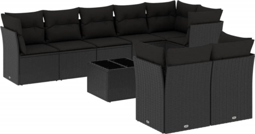 vidaXL 9-częściowy zestaw wypoczynkowy do ogrodu, z poduszkami, czarny
