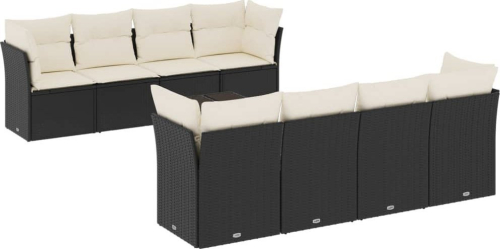 vidaXL 9-częściowy zestaw wypoczynkowy do ogrodu, z poduszkami, czarny