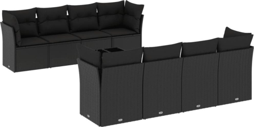 vidaXL 9-częściowy zestaw wypoczynkowy do ogrodu, z poduszkami, czarny