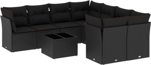 vidaXL 9-częściowy zestaw wypoczynkowy do ogrodu, z poduszkami, czarny