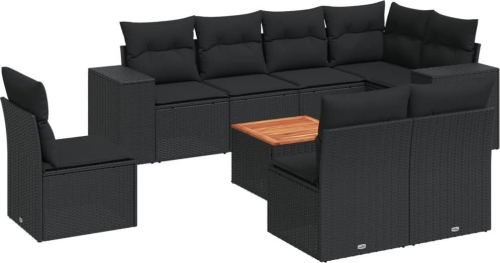 vidaXL 9-częściowy zestaw wypoczynkowy do ogrodu, z poduszkami, czarny