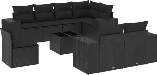 vidaXL 9-częściowy zestaw wypoczynkowy do ogrodu, z poduszkami, czarny