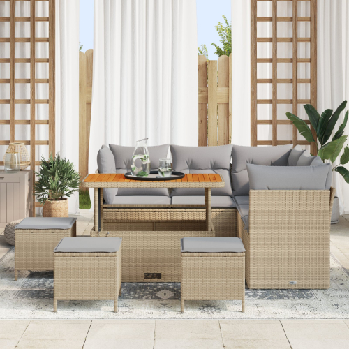 vidaXL 9-elementowy zestaw sof ogrodowych z poduszkami Beżowy Poli Rattan Akacja