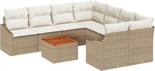 vidaxl 9-elementowy Zestaw Sof Ogrodowych Z Poduszkami Beżowy Polirattan Akacjowy