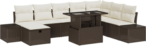 vidaXL 9-elementowy zestaw sof ogrodowych z poduszkami brązowy polirattan