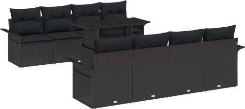 vidaXL 9-elementowy zestaw sof ogrodowych z poduszkami Czarny Polirattan