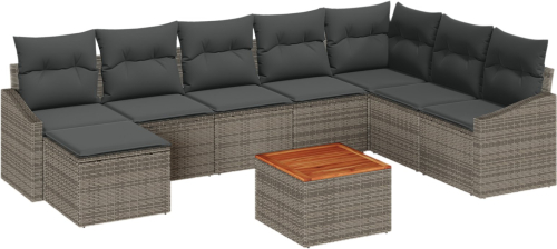 vidaXL 9-elementowy zestaw sof ogrodowych z poduszkami Szary Polirattan Akacja