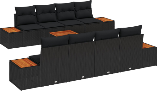 vidaXL 9-elementowy zestaw sofy ogrodowej z poduszkami czarny poli rattan akacja