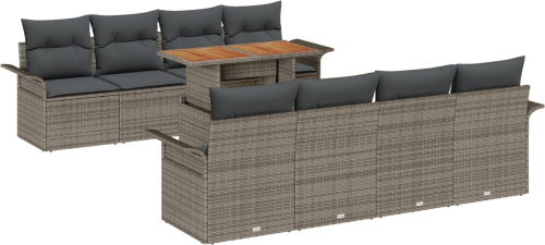 vidaXL 9-elementowy zestaw sofy ogrodowej z poduszkami szary polirattan
