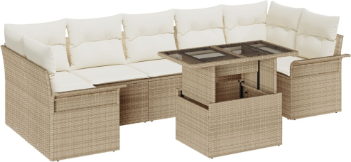 vidaXL Beżowy zestaw 8 częściowych sof ogrodowych z poduszkami Poli Rattan