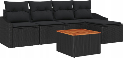 vidaXL Czarny Zestaw Sof Ogrodowych z Poduszkami Rattan Akacjowy, 6 Części
