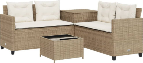 vidaXL Narożnik ogrodowy z poduszkami i stolikiem, rattan PE, beżowy