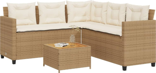 vidaXL Narożnik ogrodowy z poduszkami i stolikiem, rattan PE, beżowy