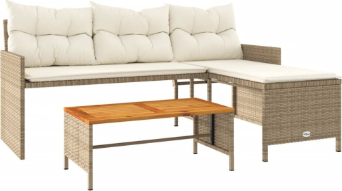 vidaXL Narożnik ogrodowy z poduszkami i stolikiem, rattan PE, beżowy
