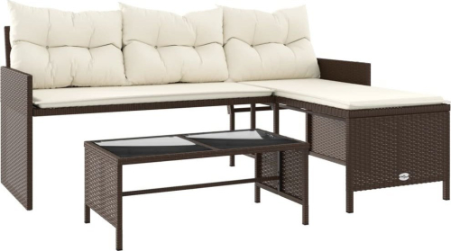 vidaXL Narożnik ogrodowy z poduszkami i stolikiem, rattan PE, brązowy