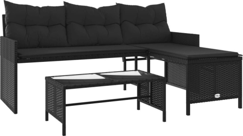 vidaXL Narożnik ogrodowy z poduszkami i stolikiem, rattan PE, czarny