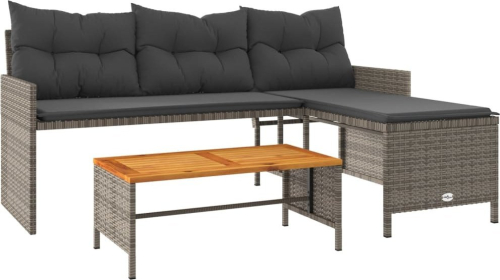vidaXL Narożnik ogrodowy z poduszkami i stolikiem, rattan PE, szary