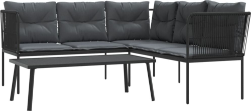 vidaXL Ogrodowy zestaw mebli z poduszkami, czarny, stal i textilene