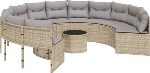 vidaXL Sofa ogrodowa, stolik i poduszki, okrągła, beżowy rattan PE