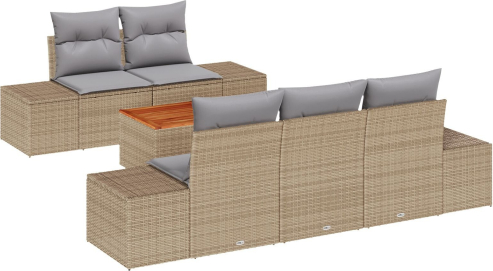 vidaXL Sześcioczęściowy zestaw sof ogrodowych z poduszkami Beżowy Polirattan